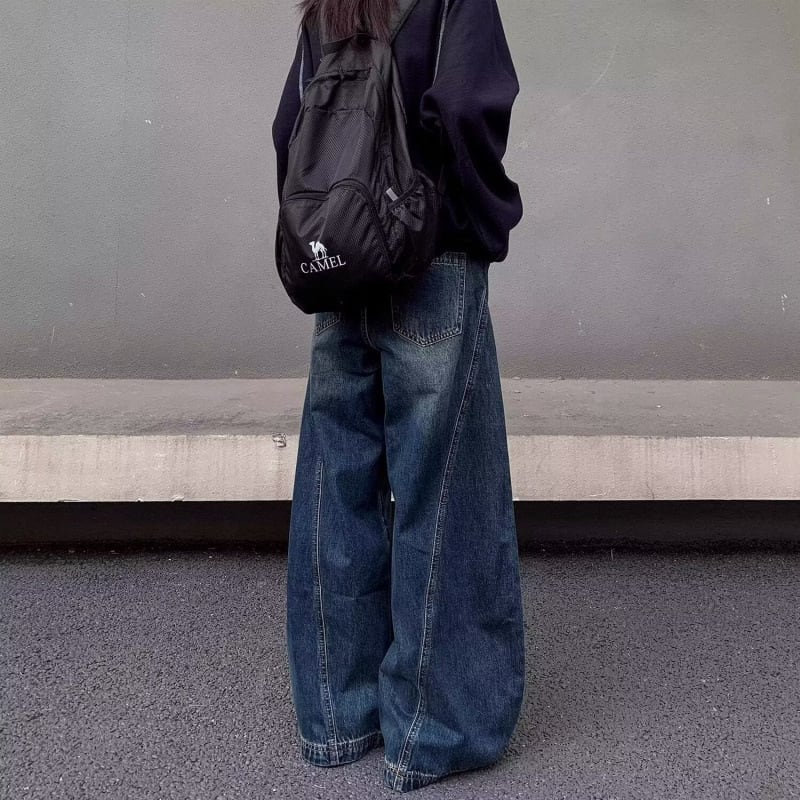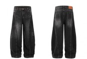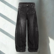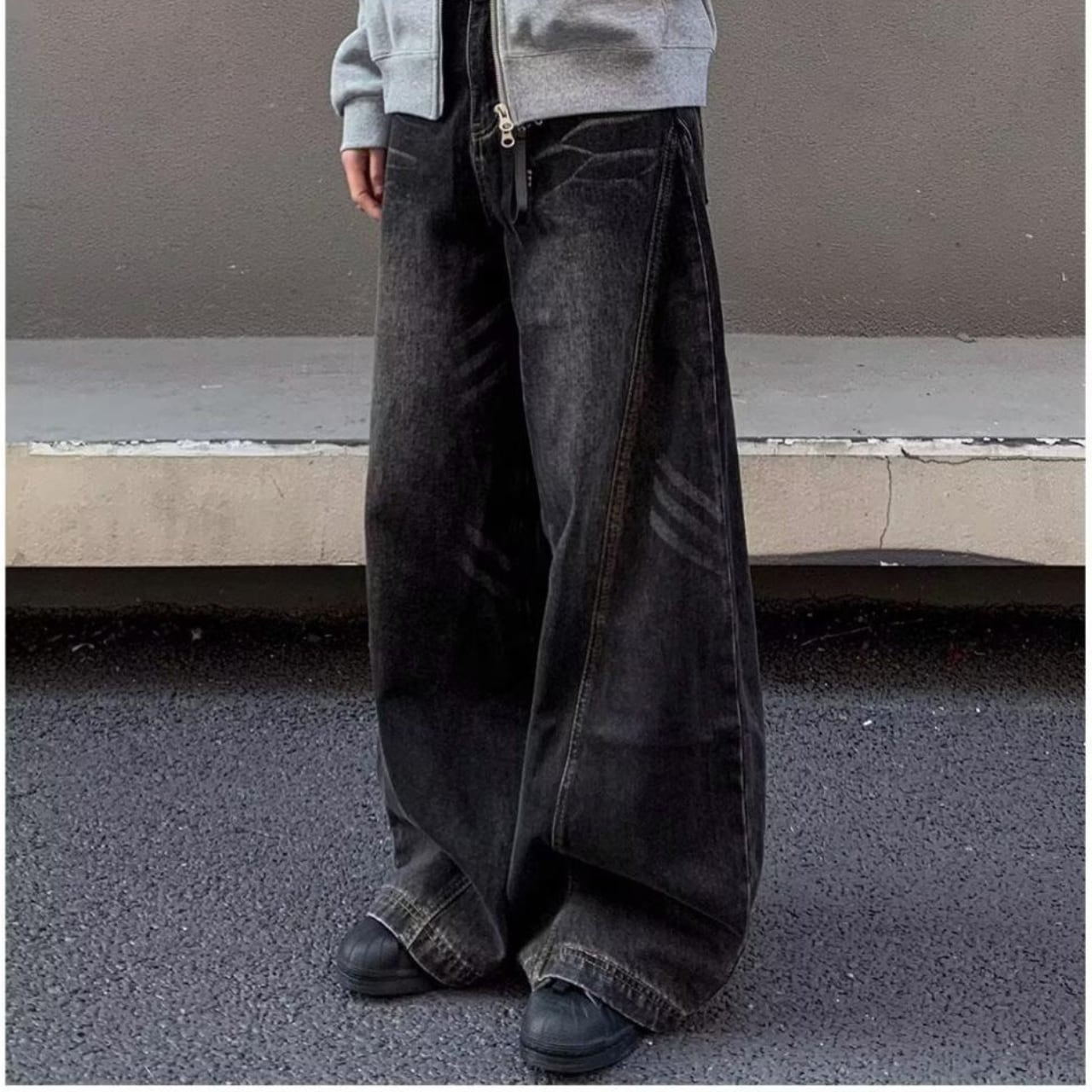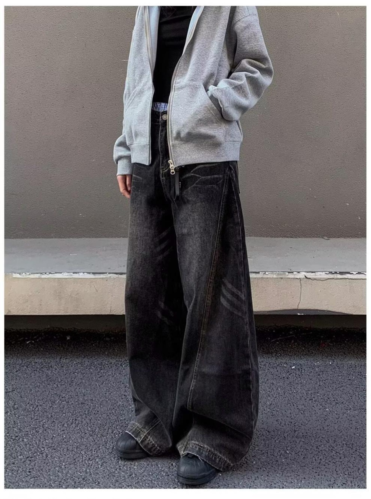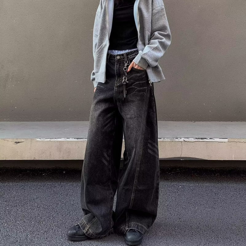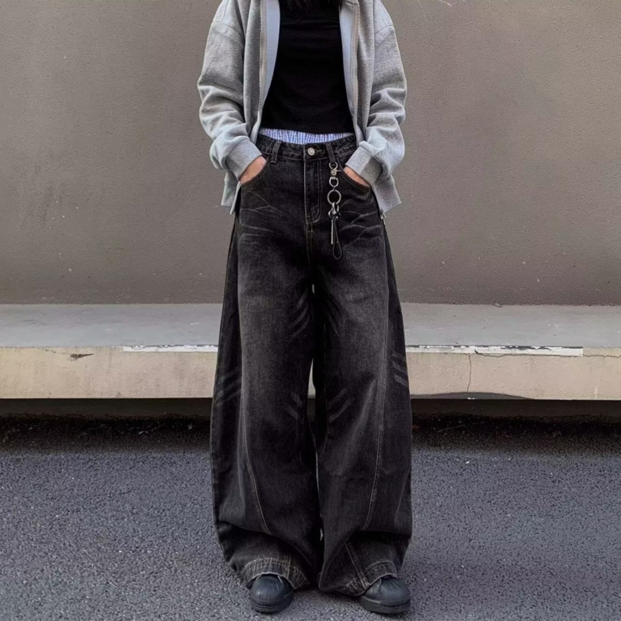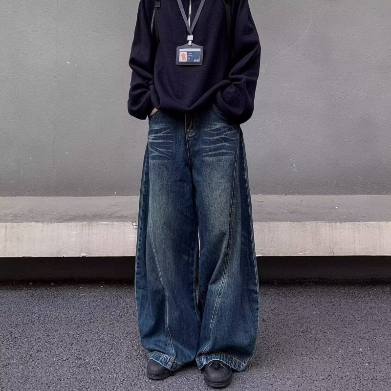 ルーズなシルエットで、こなれ感を演出するフルレングスデニム。
