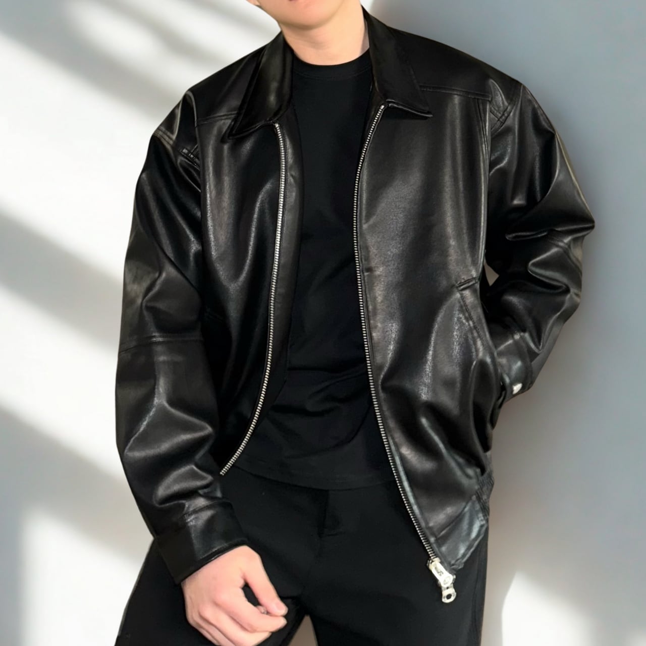 フェイクレザー ジャケット 長袖 ヒップ丈 オーバーサイズ nr0002