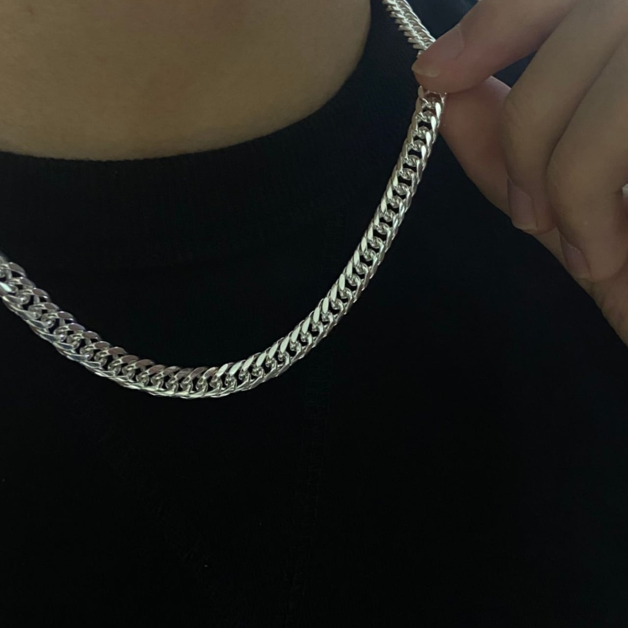 普段のスタイルにアクセントをプラスする、シルバーカラーのチェーンネックレス。