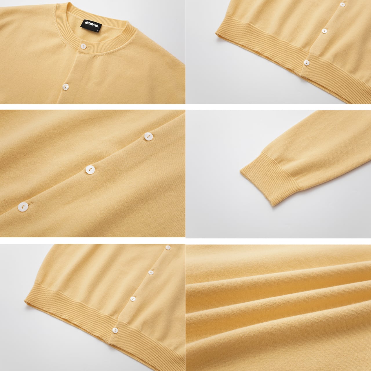 シンプルなデザインで、着回し力抜群の長袖ニットカーディガン。