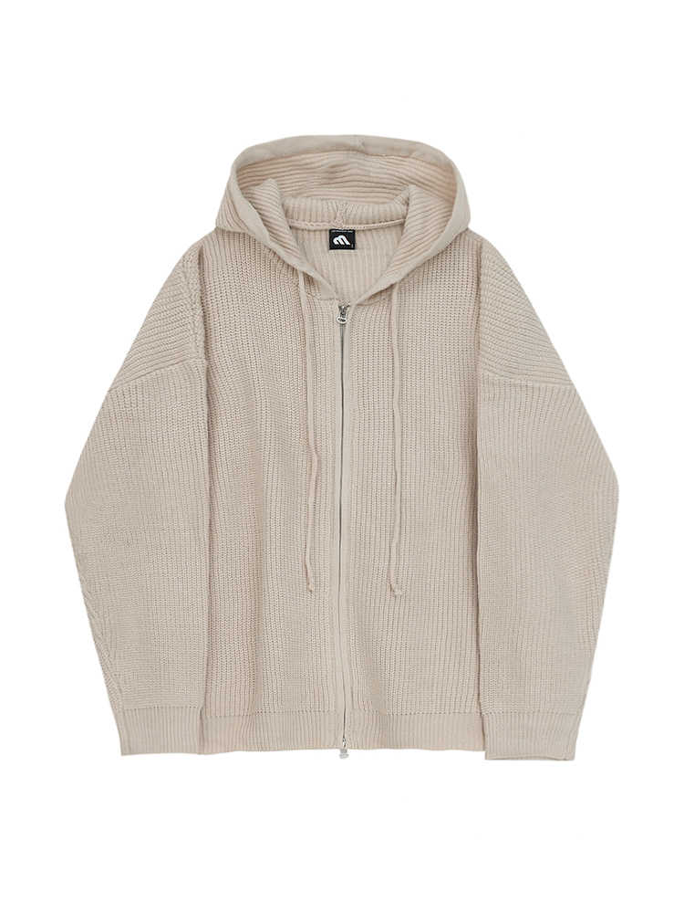 ニットカーディガン ジップアップ フード付き オーバーサイズ nr0040