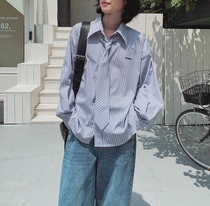 ルーズなシルエットで、トレンド感あふれる着こなしを叶えるストライプ柄シャツ。