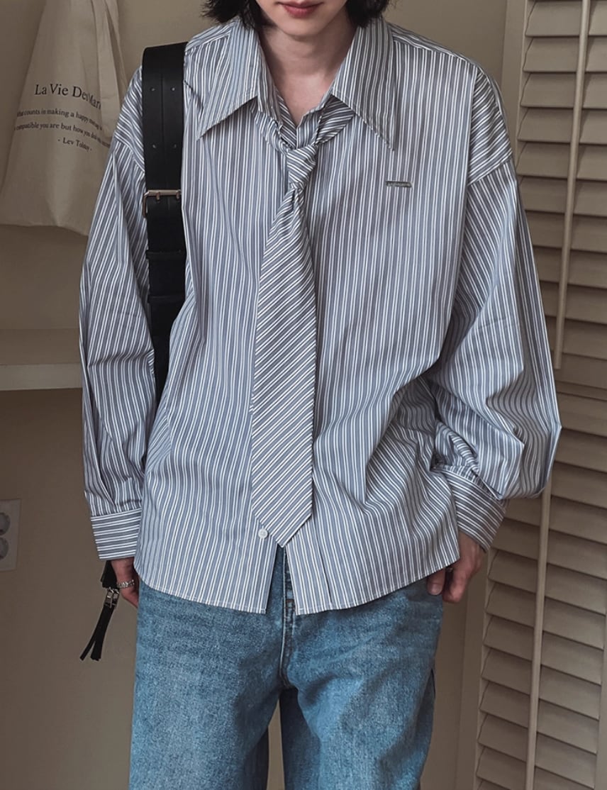 シャツ ストライプ柄 オーバーサイズ 長袖 シャツカラー nr0041