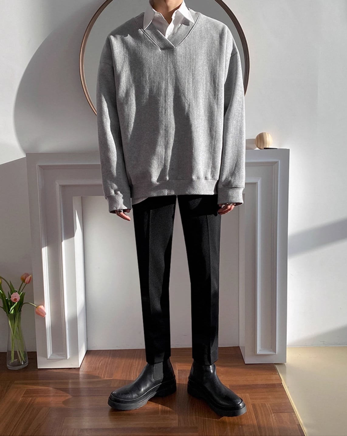 スウェット Vネック 長袖 オーバーサイズ nr0055